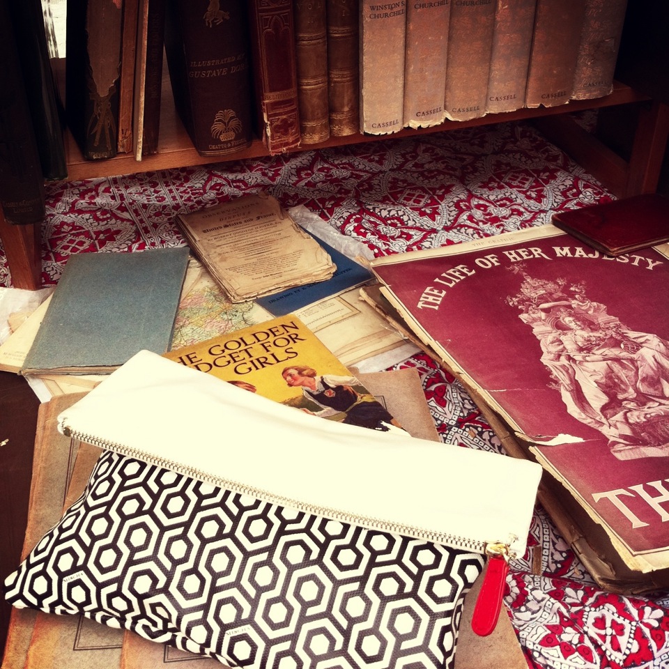 | Scouring an antique book shop in Portobello Market |